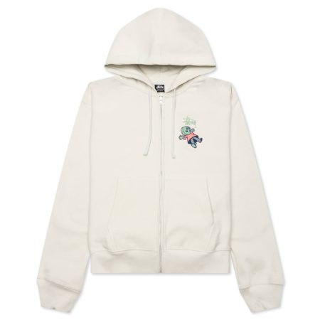 $140.00The Stussy Dollie Zip Hoodie is a premium graphic silhouette must-have. Featuring a blend of cotton and polyester, the silhouette features a front zip closure along with a front pocket. Ribbed details are also placed. The screen-printed logo branding and graphics complete the rest of the look. Cotton/polyester blend Full-zip…